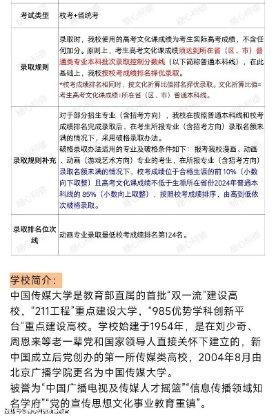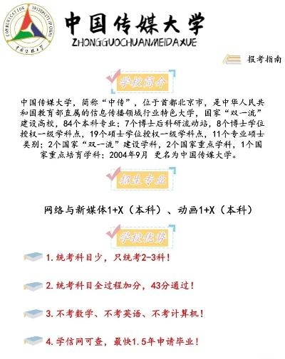 (一)参考往年分数线 考生和家长在报考过程中,可以充分参考北京传媒大学近几年的分数线,通过对这些数据的研究,能够清晰地了解学校的录取分数线范围和大致的变化趋势,需要特别提醒的是,分数线仅仅是一个重要的参考因素,绝不能将其视为报考决策的唯一依据,考生们还需要综合考虑其他诸多因素,如自身的兴趣爱好、学科优势以及未来的职业规划等。